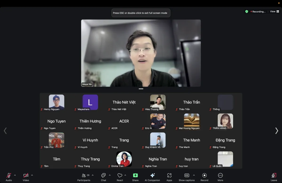 Coaching nhóm hàng tuần với Maya & VNC Team qua Zoom