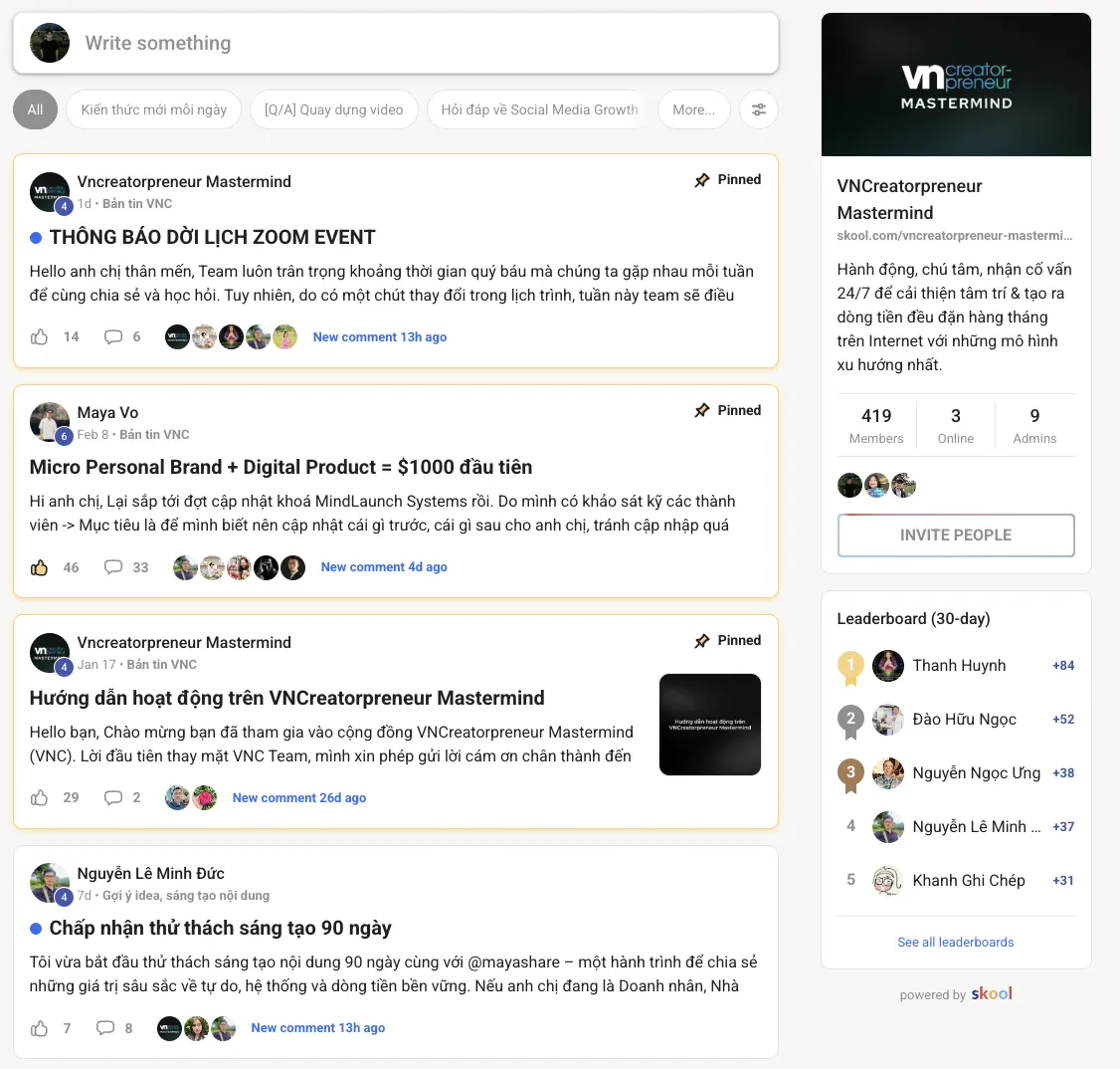 Truy cập cộng đồng Skool VNC Mastermind – Kết nối với 400+ doanh nhân, nhà sáng tạo & huấn luyện viên